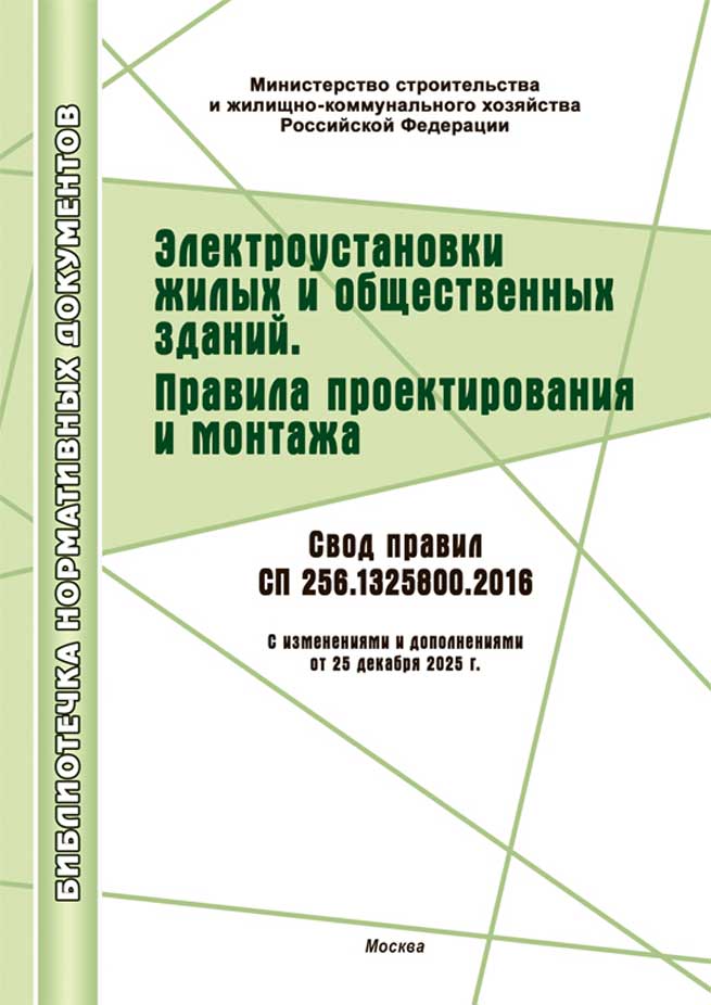 Электроустановки жилых и общественных зданий. Правила проектирования и монтажа. Свод правил. СП 256.1325800.2016. -МИЭЭ,2025.-172с.,м.п.